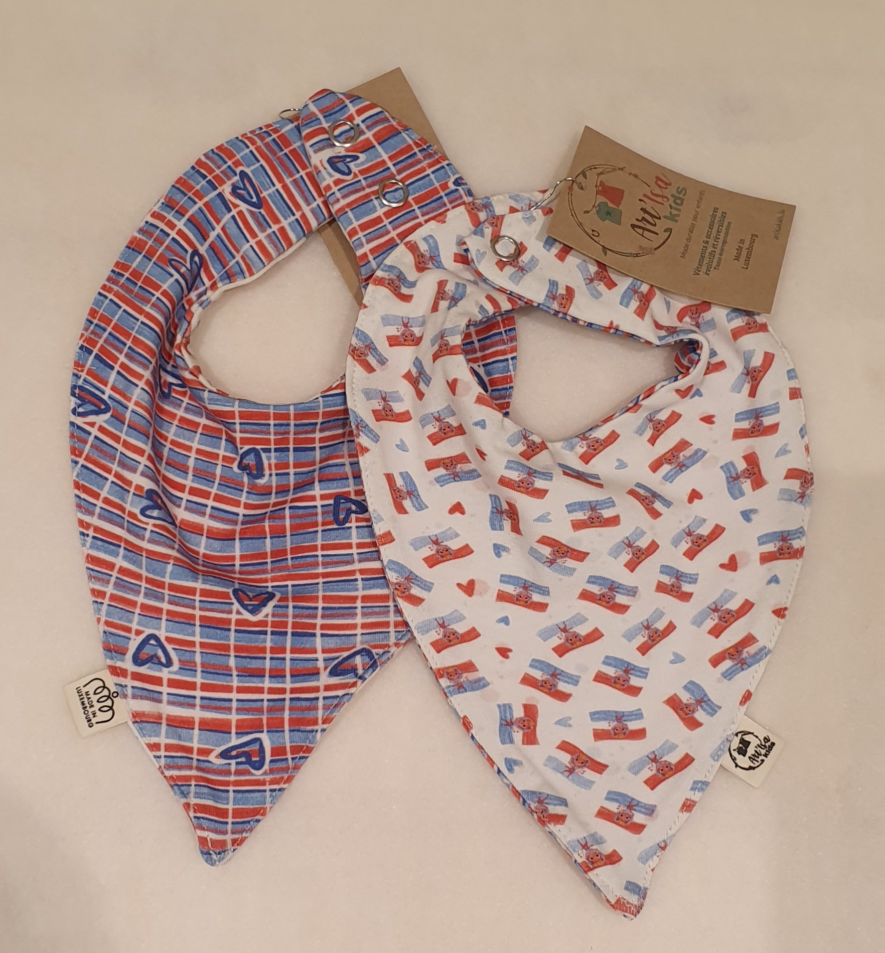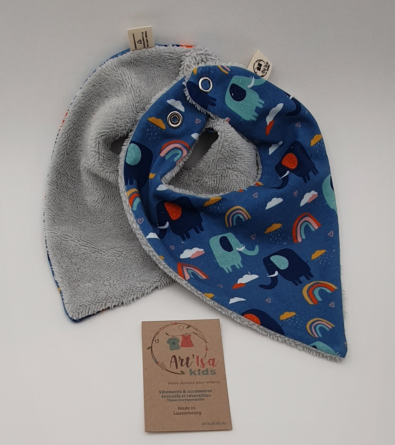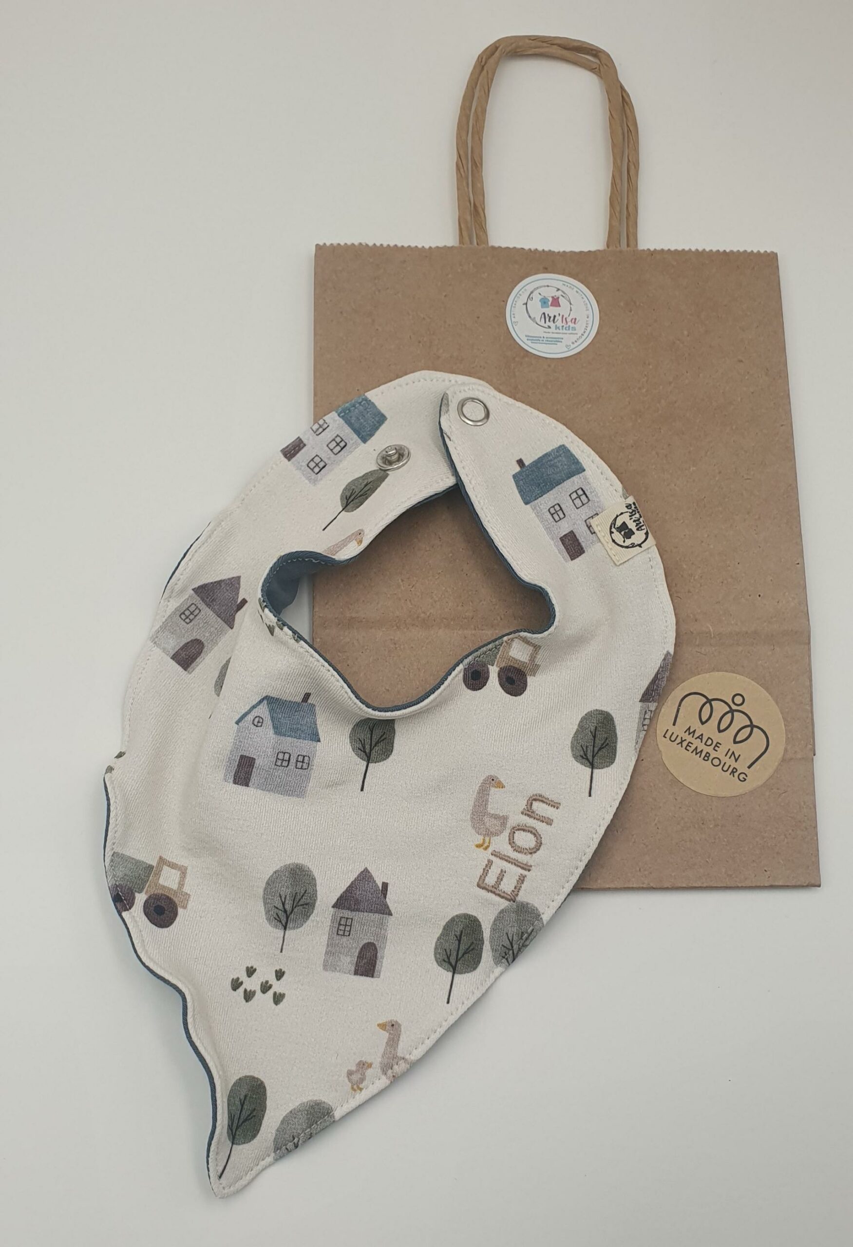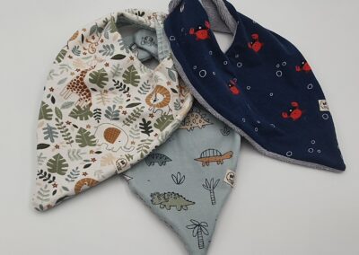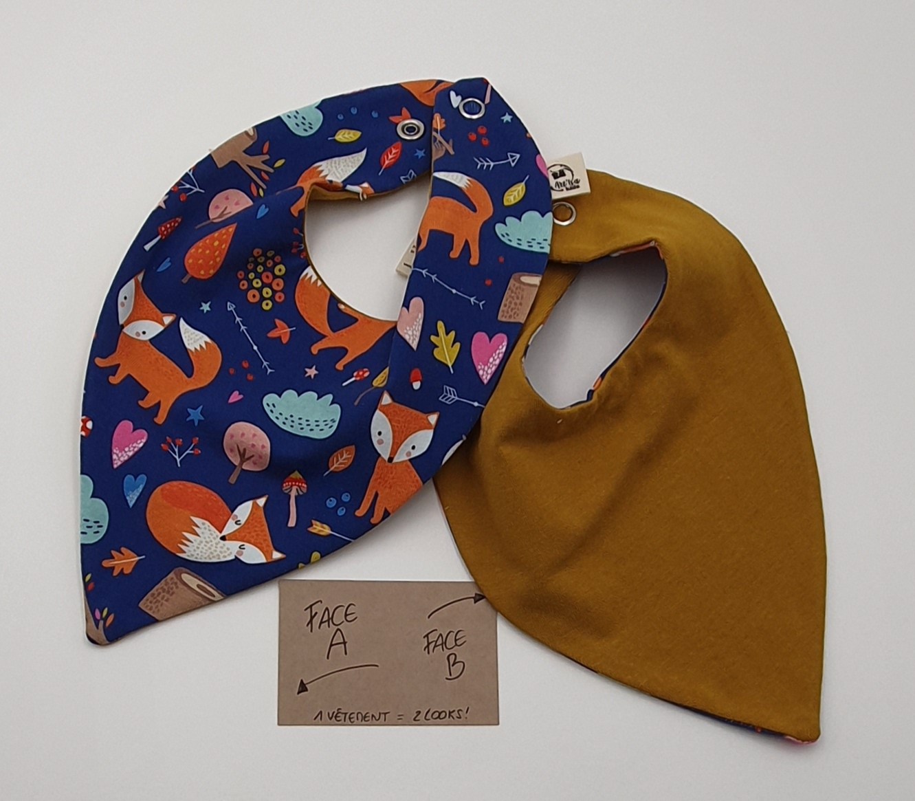 Usages multiples: le bandana tient chaud et est absorbant (en fonction des tissus). Il peut être personnalisé sur demande! Il peut être porté des deux côtés en fonction de l’usage souhaité. Un chouette cadeau de naissance à personnaliser et à assortir à d’autres articles (bonnet, sarouel, etc).