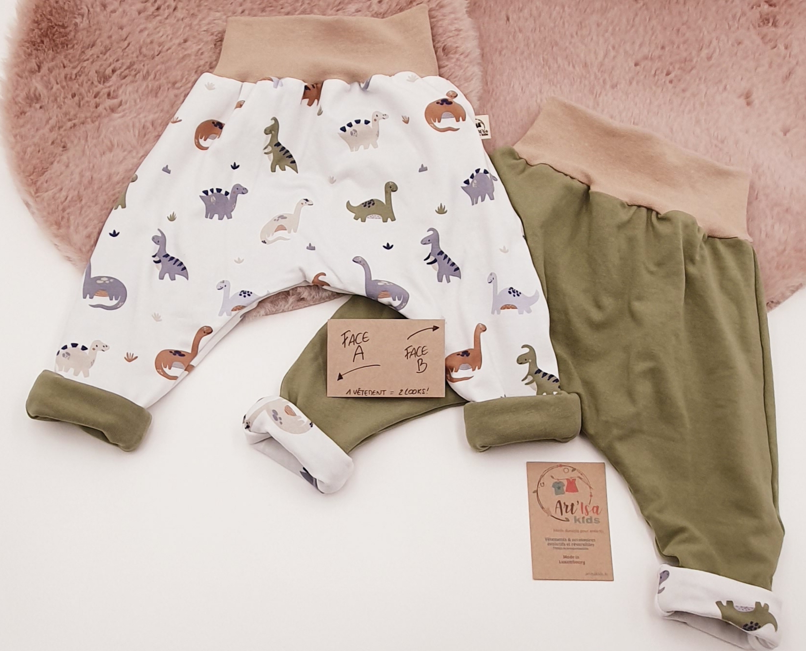 Pantalons hyper confortables pour assurer le bien-être de Bébé. Les extrémités des jambes seront pliées puis dépliées en fonction de sa croissance.
