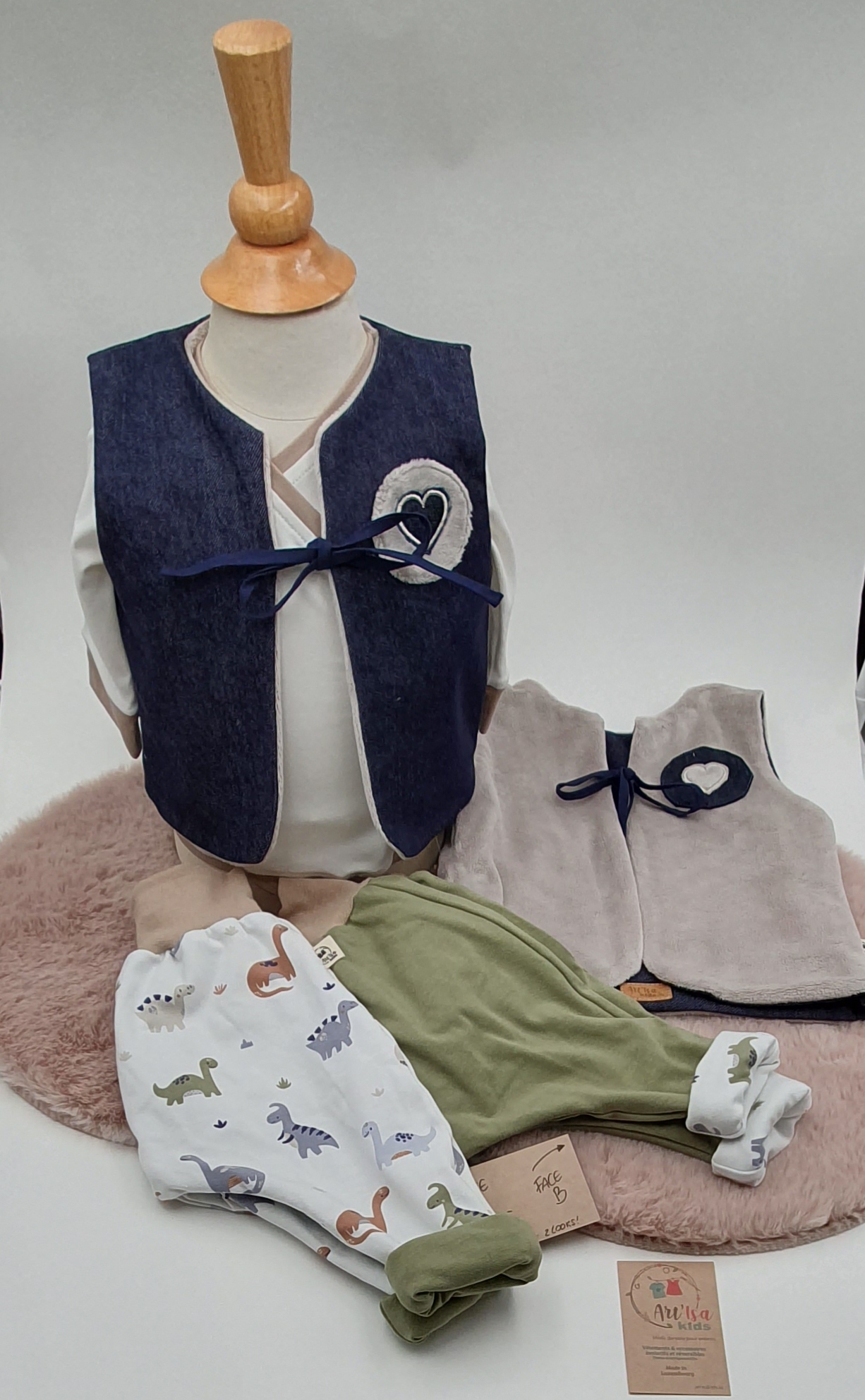 Tailles : T1: 3-9mois, T2: 6-12mois, T3: 9-18mois, T4: 18-36mois (tailles supérieures sur demande)